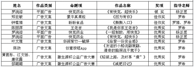 近日,由中国广告协会主办,广告人文化集团承办的第14届中国大学生广告艺术节学院奖春季赛颁奖盛典于北京梅地亚中心举行。我院文学与传媒系师生在此次比赛中斩获佳绩,获得1个银奖、2个佳作奖、7个优秀奖,同时文传系罗希老师、...