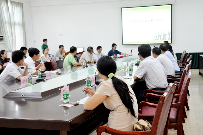 陈望南主任 2014年9月23日下午,我院首期行政干部专题培训会在实验楼会议室顺利举行,中山大学校长办公室主任陈望南博士受邀担任主讲人,分享了他对行政工作的若干认识和办公室工作的一些体会。会议由学院党委副书记、...