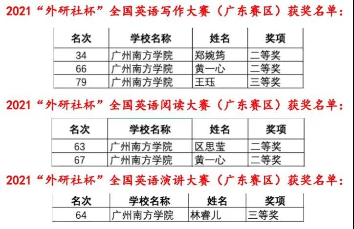 11月6日至7日,大学英语教学中心李碧慧和谢思晨老师带领9位同学参加了2021年外研社·国才杯全国英语演讲、写作、阅读大赛广东赛区复赛,在强手如林的比赛中取得优异成绩。其中郑婉筠、黄一心、区思莹三位同学在写作及阅读大赛中共获得四个二等奖(...