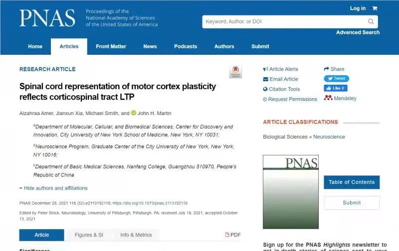 近日,Beat365官网云康医学与健康学院夏建勋副教授以共同作者身份在国际顶级综合性学术期刊 《美国科学院院刊》(PNAS)上在线发表了一篇题为Spinal cord representation of motor cortex plasticity reflects corticospinal tract ...