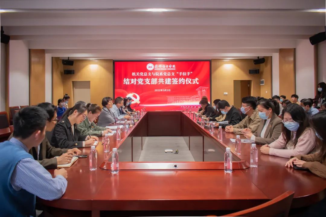 为使党史学习教育成效可持续发展,推进深入领会十九届六中全会精神,提升学校基层党组织建设品质,确保党建引领作用的落地,3月3日下午,学校机关党总支与院系党总支在学校综合楼第一会议室举行“手拉手”结对党支部共建签约仪式。...