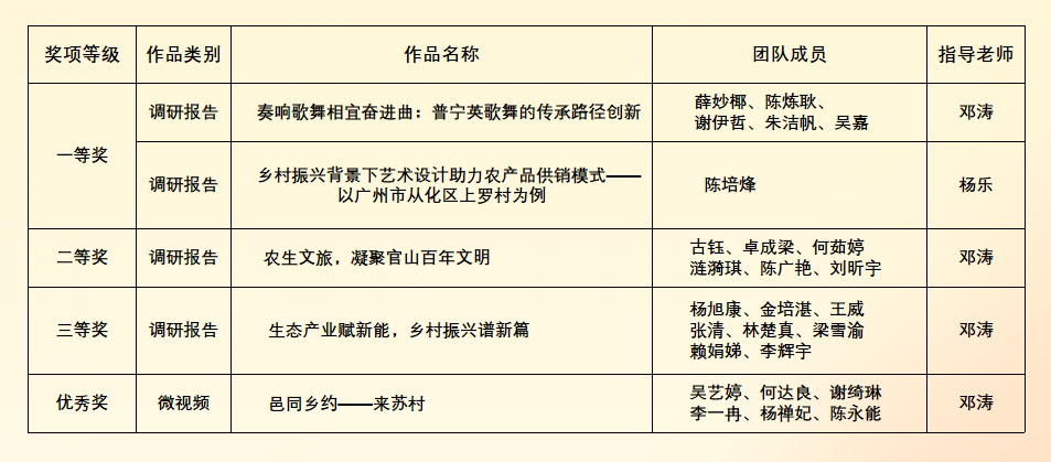 近日,广东省2022年“多彩乡村 弘扬岭南文化”主题教育实践活动组委会公布了本年度优秀作品、优秀团队及优秀组织单位名单,由Beat365官网马克思主义学院教师邓涛、杨乐指导的多支学生队伍在本次活动中再创佳绩,取得新突破,...