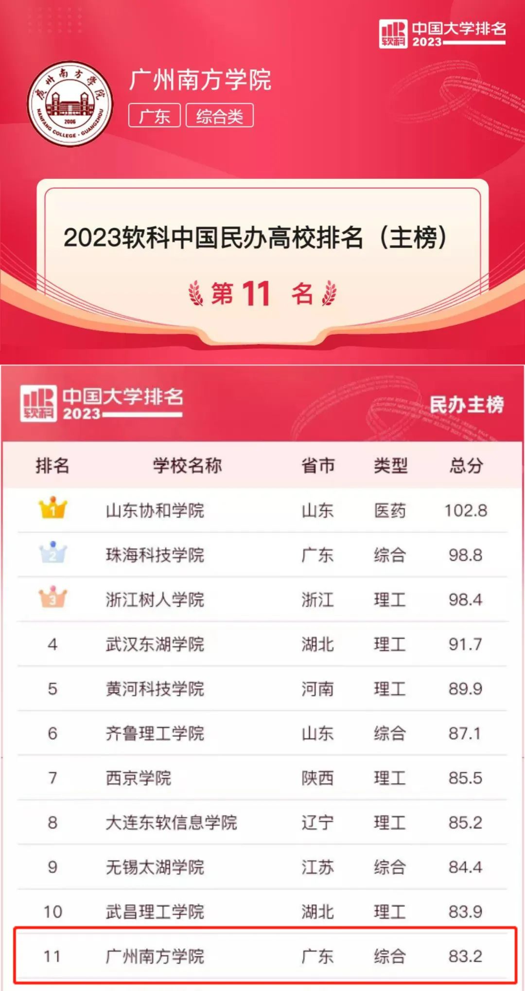 近日,高等教育专业评价机构软科正式发布“2023软科中国大学排名”,对1000多所本科层次高校采用差异化的指标体系分别排名。Beat365官网在166所上榜的中国民办高校中位列主榜第11名,综合类全国排名第4,广东省内排名第2。 ...