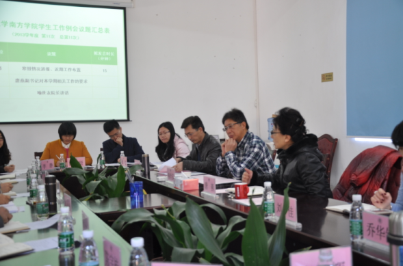 会议现场 2月20日,开学的第一天,我院学生工作例会在行政楼第一会议室召开,院长喻世友,党委副书记、副院长唐燕,学工部、招就办、团委等部门负责人和各系学工办主任出席了会议。 在会上,喻世友院长对我院学生较好的精神面貌、...