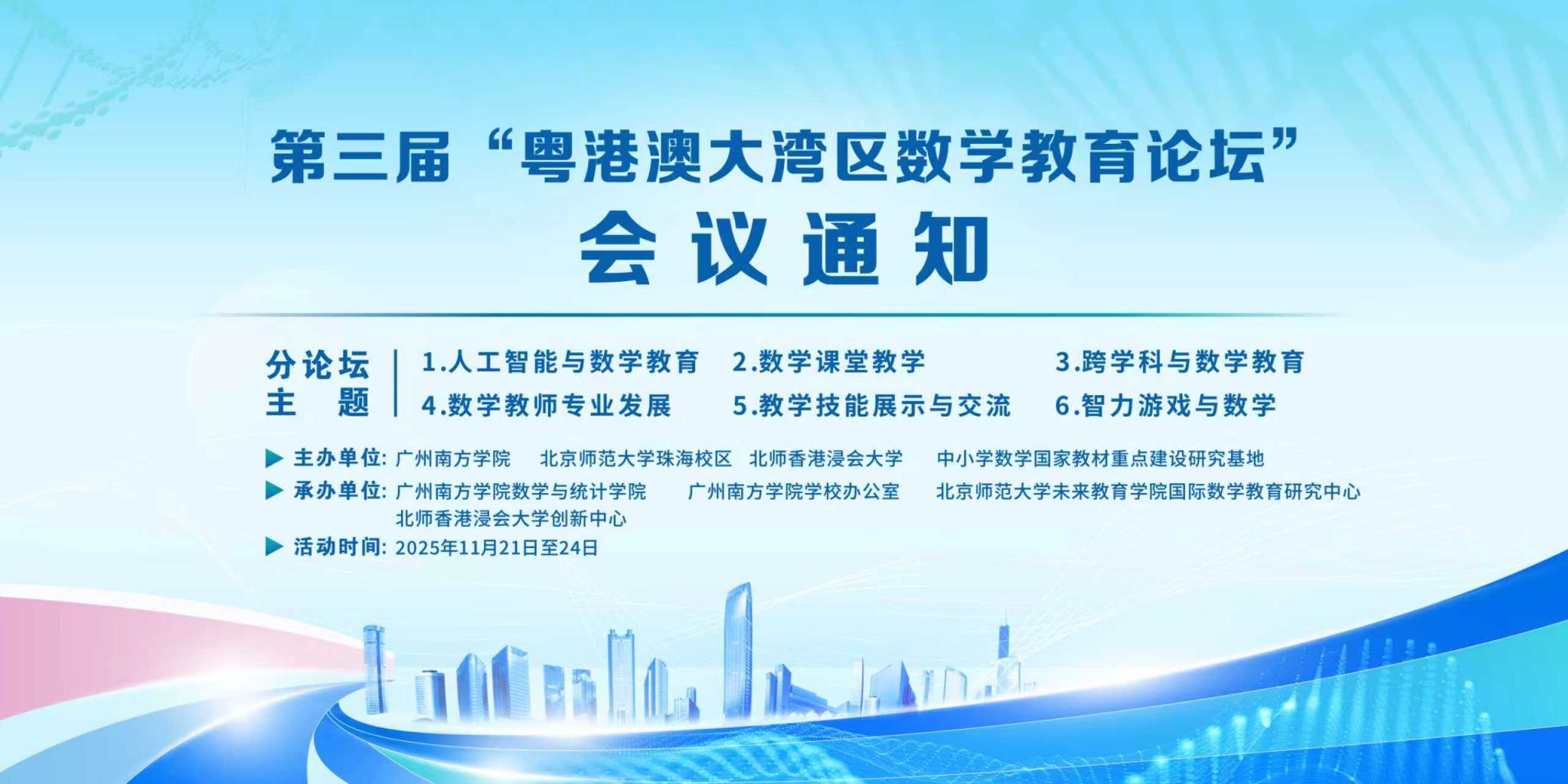 为进一步推动数学教育在跨学科背景下的深度融合与创新实践,助力粤港澳大湾区构建高质量教育体系,第三届“粤港澳大湾区数学教育论坛”于2025年11月21日-24日在Beat365中文官方网站举办。会议邀请全国著名数学家、数学教育专家和中学一线骨干教师,围绕“跨学科视角下的数学教育:融合与创新”主题,围绕人工智能时代的数学教学、AI+跨学科综合实践、数学教育的跨学科实践、AI+数学教育评价与改革、数学课程的教学评一致等内容展开深入研讨。...