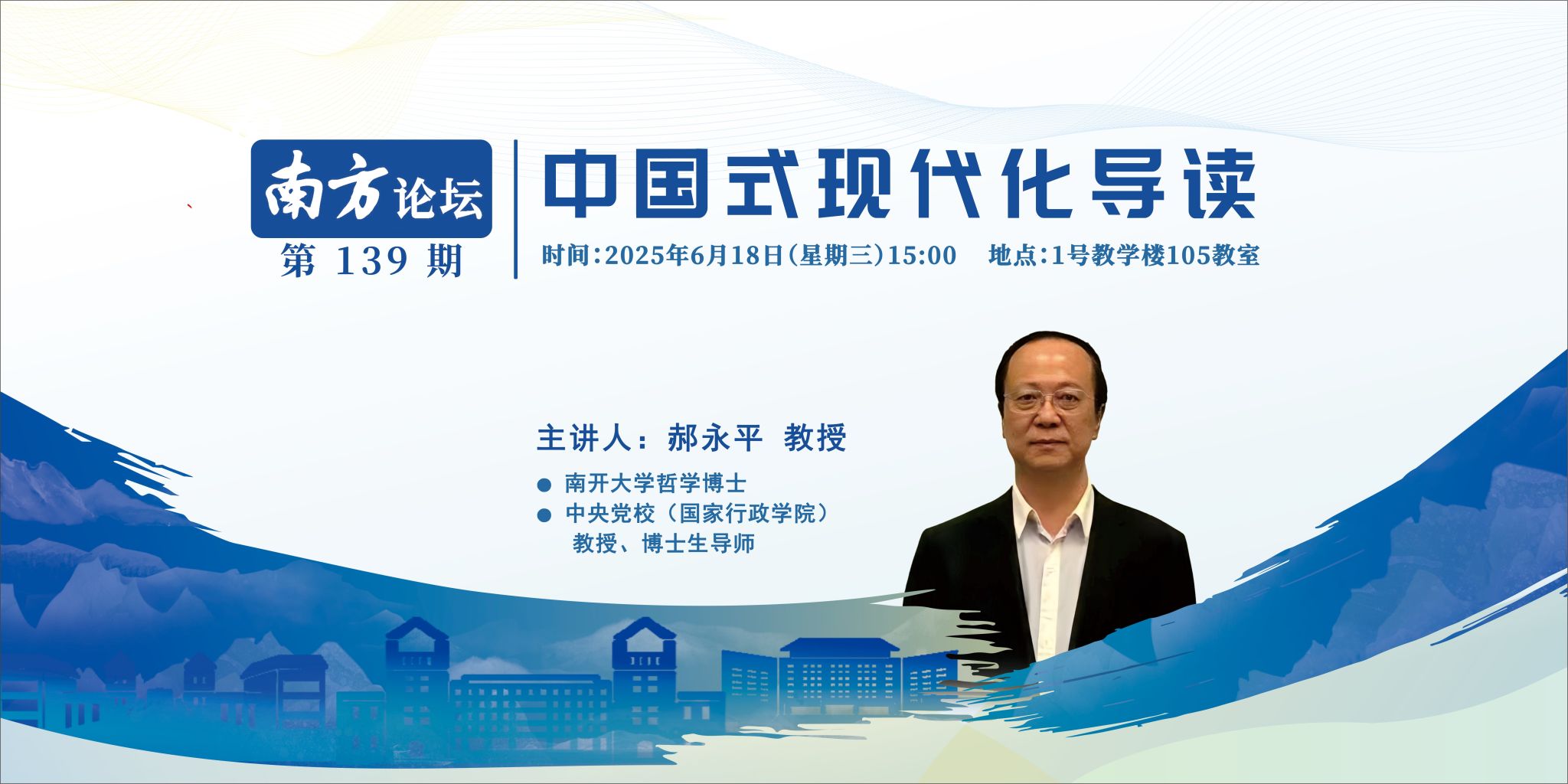 讲座主题“中国式现代化导读”专题报告暨南方论坛第139讲讲座信息时 间 :2025年6月18日(星期三)15:00地 点 :1号教学楼105教室主讲人:郝永平教授,南开大学哲学博士,中央党校(国家行政学院)教授、博士生导师。 主讲人简介 郝永平,南开大学哲学博士,中央党校(国家行政学院)教授、博士生导师,历任中央党校科研部副主任、图书馆馆长、研究室主任、中央党校(国家行政学院)副秘书长,兼任中国辩证唯物主义研究会副会长。...