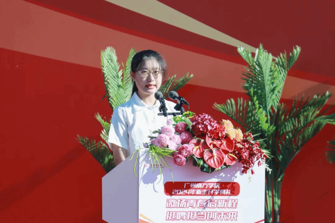 来自会计学院2021级会计学专业的郑妍同学作为在校生代表发言。她鼓励新同学独立思考,努力拼搏;保持谦卑,激发学习热情;拓展视野,勇于实践创新。希望同学们可以秉承“厚德、真理、忏思、拼搏”的校训,争做新时代接班人。