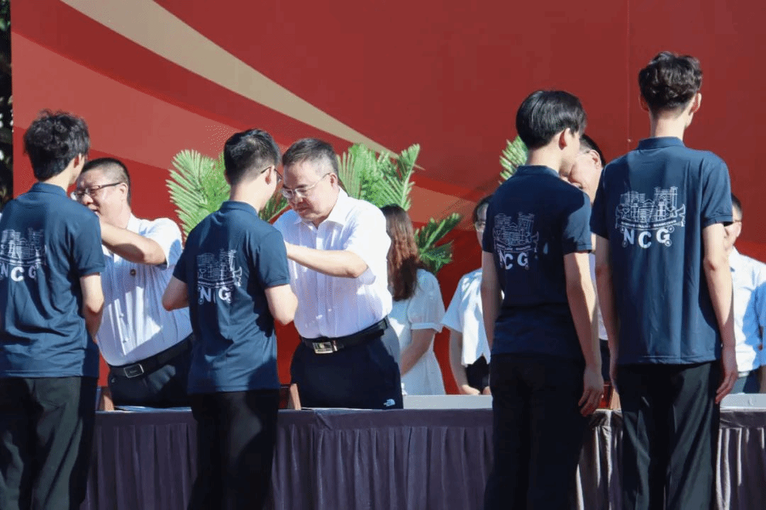 典礼现场进行了校徽佩戴仪式,由校领导亲手为新生代表佩戴校徽。仪式简短而庄重,寓意深远,宣示着又一批青春力量在南方学院走上奋进之路、逐梦之旅。