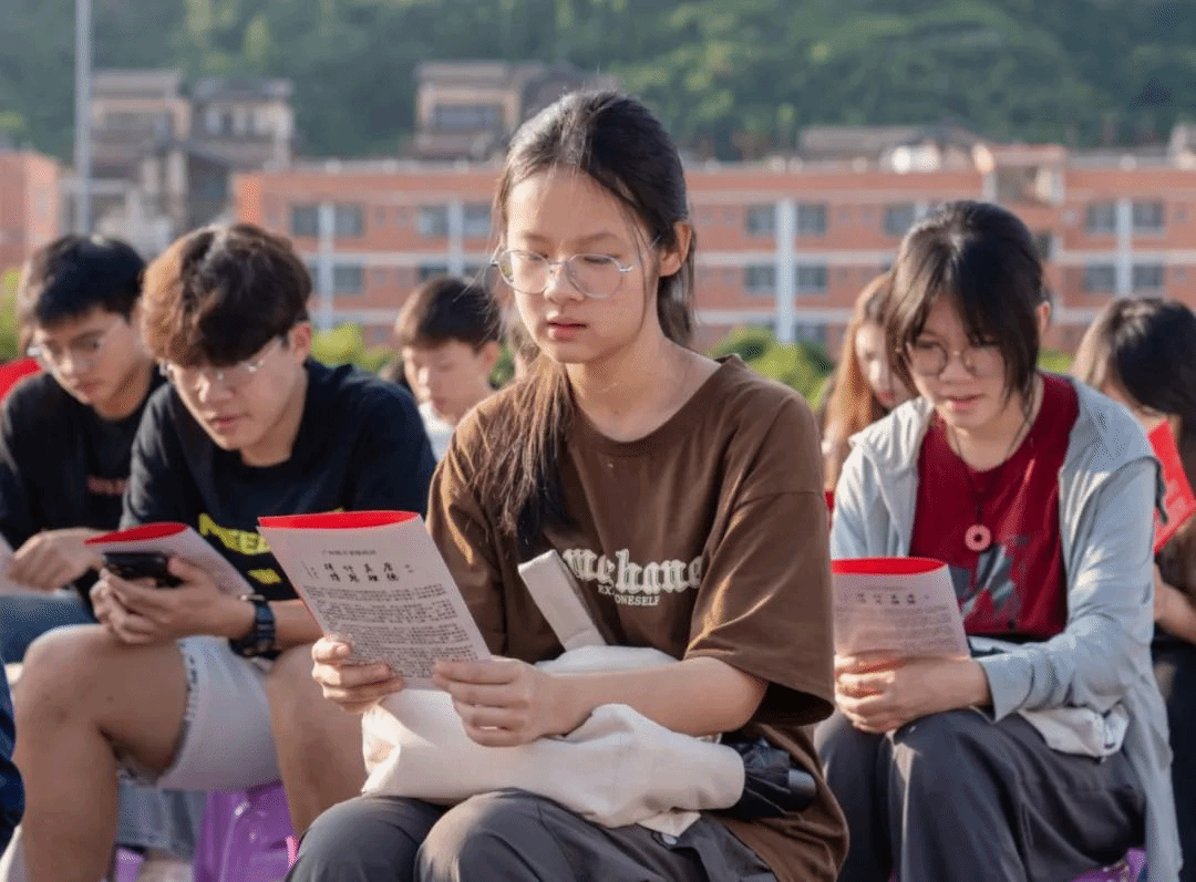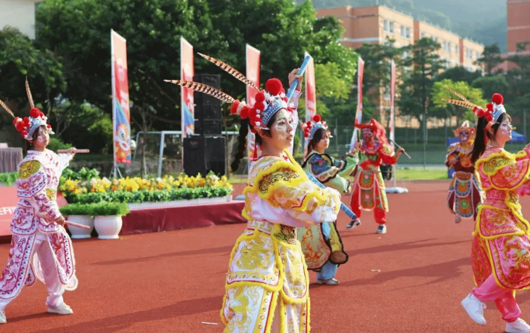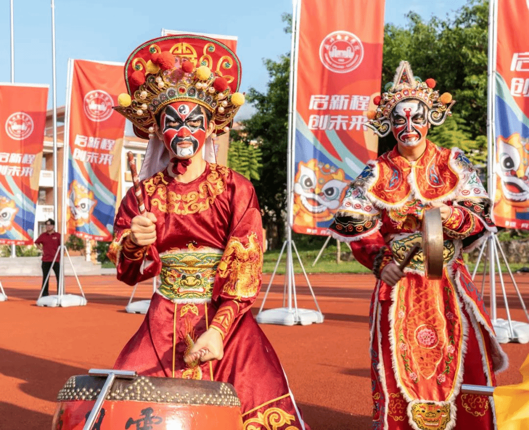 在仪式正式开始之前,学校风云英歌队踏着鼓点入场。他们以精湛的技艺和高涨的热情为新生生动呈现了“中华战舞”这一非物质文化遗产的魅力。