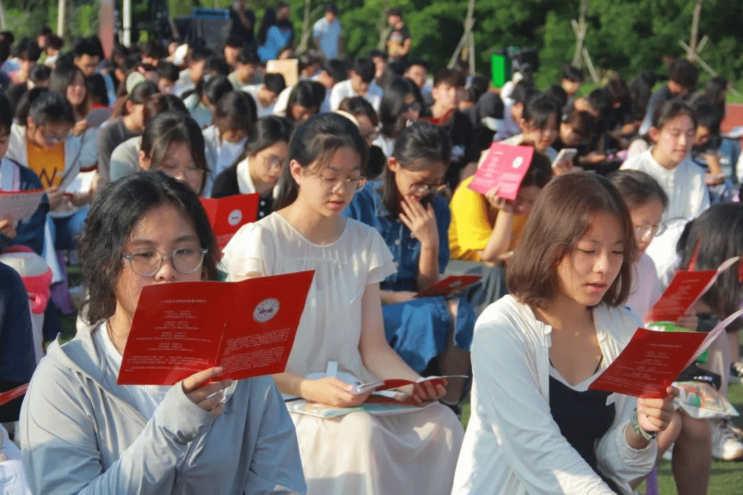 在开学典礼的尾声,在场师生齐唱校歌。“追求真理,拼搏向上。德才兼备,为国栋梁”,师生共同唱响南院人的精神。