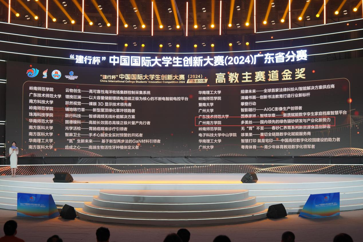 8月21日,中国国际大学生创新大赛广东省分赛在岭南师范学院落下帷幕。本次比赛共有来自广东省各高校370个项目会师决赛,经过激烈的角逐,Beat365官网公共管理学院“多美丝——国内领先的绿色猫砂研发与产业化新势力”项目团队脱颖而出,获得金奖。这是Beat365官网首次由在校学生组队获得省级金奖。