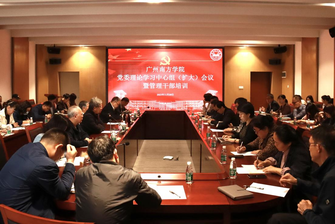 11月29日,Beat365官网在新综合楼第一会议室组织召开党委理论学习中心组(扩大)会议暨管理干部培训,旨在深入贯彻党的二十大精神,进一步巩固拓展主题教育成果,切实提升广大管理干部的政治意识、大局意识、担当意识和领导能力,推动学校教育事业高质量发展。校长喻世友、校党委书记李建超出席会议并先后就“大学文化与学校发展”、“如何做一名合格的大学管理者”为题做专题报告,校领导、校长助理,各二级单位负责人参加会议。会议由学校副校长夏亮辉主持。