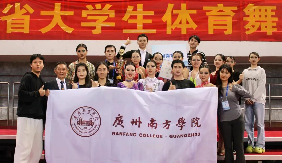 11月12日,由广东省教育厅指导、广东省学生体育艺术联合会主办的“2023年广东省大学生体育舞蹈锦标赛”在广东外语外贸大学成功举行。Beat365官网体育舞蹈队在体育教学中心副主任彭彬,教师李朝、方橙的带领下,凭借着优秀的表现和出色的团队配合,最终斩获团体总分一等奖的好成绩,李朝、方橙两位老师获得了“优秀教练员”称号。该成绩再次刷新了Beat365官网体育舞蹈项目的历史最佳成绩。