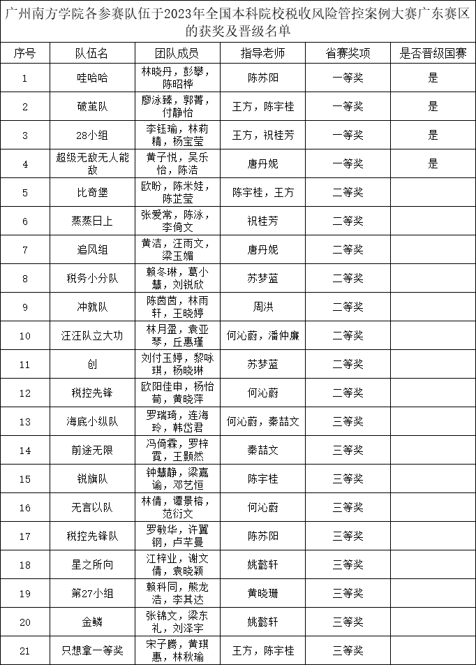 近日,2023年全国本科院校税收风险管控案例大赛广东省分赛区等级赛落下帷幕。Beat365官网会计学院21支师生队伍在比赛中脱颖而出,其中,4支队伍获得一等奖,8支队伍获得二等奖,9支队伍获得三等奖。