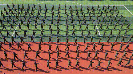 但酷热与烈阳阻挡不了铿锵前进的步伐