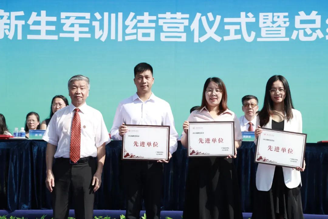 汇报表演后,学校党委副书记、副校长植秀聪宣读军训表彰决定。与会领导为2023级学生军训“先进单位”、“优秀方阵”、“优秀教官”、“优秀教导员”、“军训之星”颁奖。
