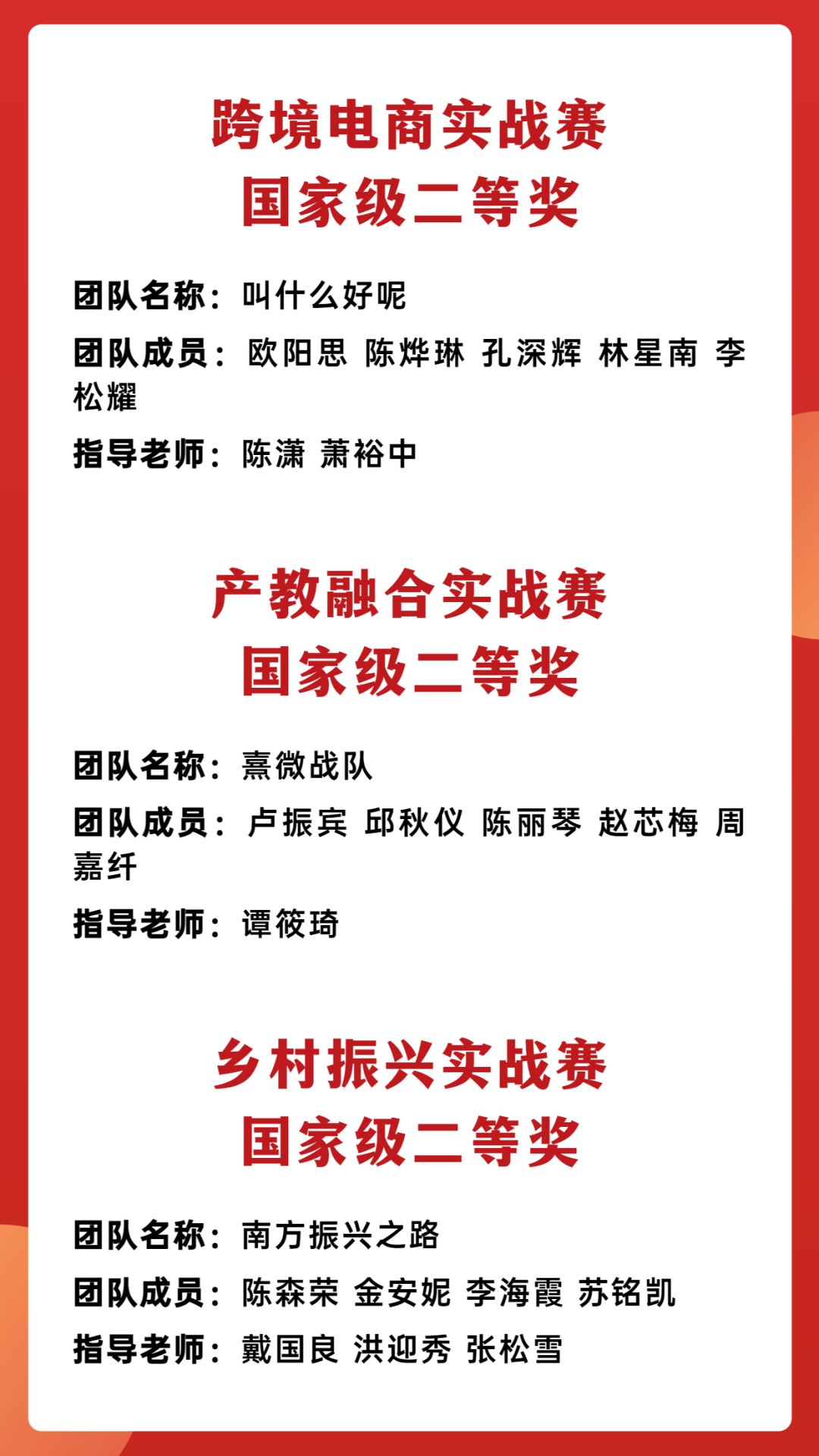 比赛获奖名单