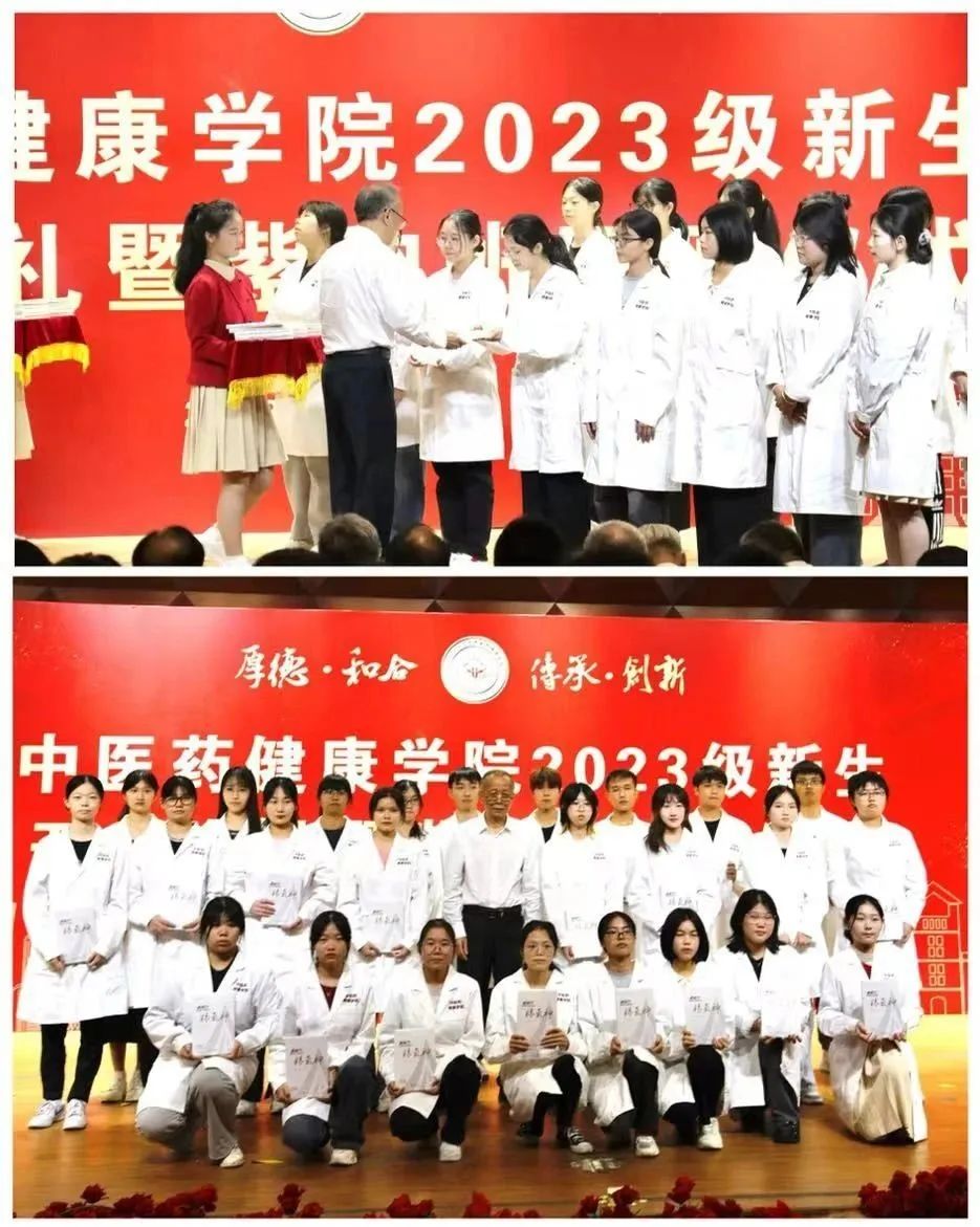 典礼上公布了中医药健康学院院徽及院训,期望学院师生秉承厚德和合,传承创新的院训,争做中医药高质量发展的推动者。