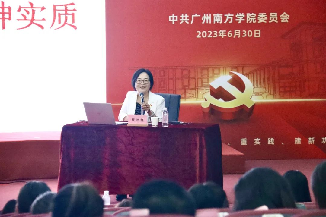 在专题辅导报告会上,省委教育工委宣讲团成员、南方医科大学马克思主义学院院长任映红作了题为《深刻领会< 习近平著作选读>第一卷、二卷的重大意义、丰富内涵和精神实质》专题报告。报告系统梳理了选读十一个方面的重要内容,结合历史以及国内国际形势展开精辟阐释,逻辑清晰、内容丰富、生动立体,具有很强的理论性、指导性和实践性,进一步引导大家准确把握习近平新时代中国特色社会主义思想的世界观和方法论,全面领悟贯穿其中的立场、观点、方法,深刻理解蕴含其中的道理、学理、哲理,为参会人员从习近平新时代中国特色社会主义思想中汲取奋进力量,进一步做好学校各项工作提供指引。