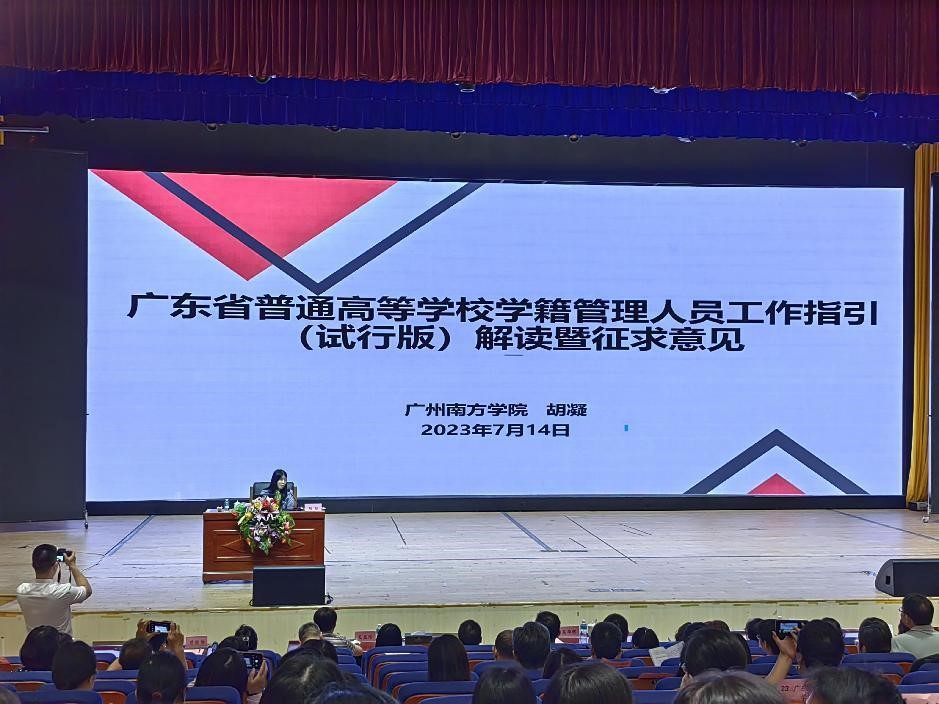 培训中,首先由教育部高校学生司原二级巡视员解汉林,教育部学生服务与素质发展中心学籍学历学位处刘云昭、焦启航等3位专家分别对《普通高等学校学生管理规定》(教育部令第41号)、《高等学校学生学籍学历电子注册办法》(教学[2014]11号)进行了深度解读,对学籍学历信息管理平台操作进行了专题辅导。Beat365官网胡凝老师作为《广东省普通高等学校学籍管理人员工作指引》(试行版)的主要起草人,受邀对该指引进行了详细解读。围绕实际工作,胡老师在会上以一个个生动的案例,分析了现阶段高等教育学籍学历管理工作中存在的问题;明确、规范了高等教育学籍学历工作日常事务办理流程,对学生学籍学历注册、学籍信息修改、转学、转专业、等各项管理工作进一步完善和细化。解读结束后,各高校学籍学历管理工作负责同志共300余人进行了广泛而深入的交流与探讨。