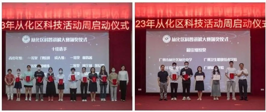 开幕式上,从化区科技工业商务和信息化局黄康华副局长对活动的开展表示祝贺并致欢迎词。随后,参会领导为2023年从化区科普讲解大赛获奖选手及组织单位颁奖。