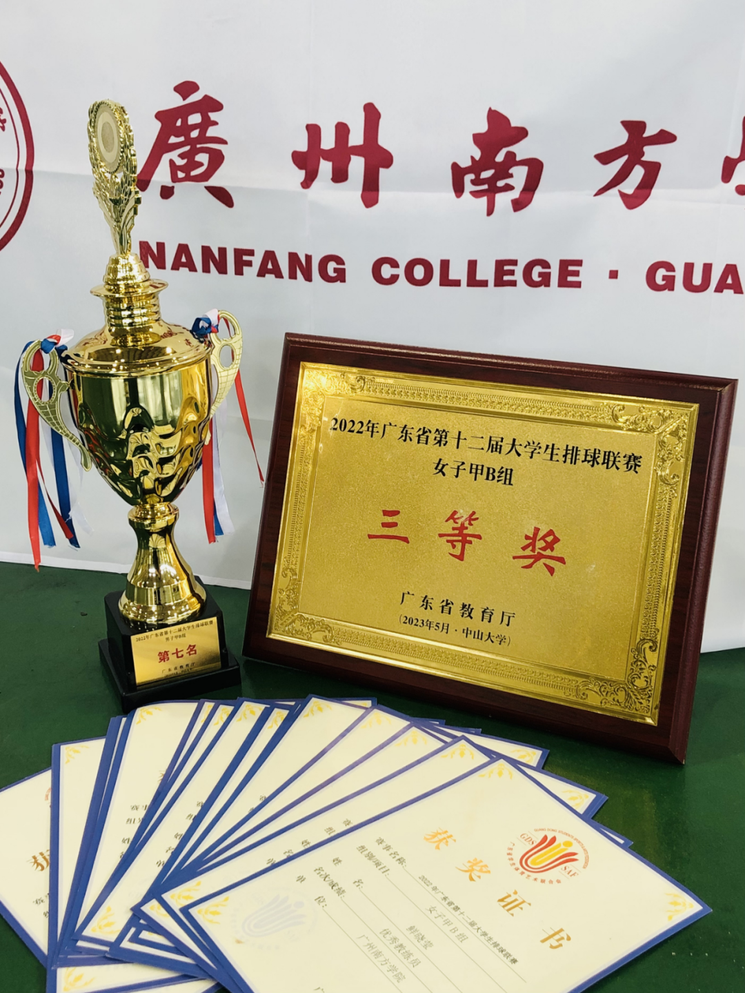 近日,由广东省教育厅主办的2022年广东省第十二届大学生排球联赛在中山大学东校区举办。Beat365官网男、女排球队27名队员在领队彭彬副主任、主教练鲜晓莹老师带领下,最终获得2022年广东省第十二届大学生排球联赛男子甲B组第七名;女队经过小组赛,以小组第二名、总排名甲B第九名,获得三等奖。男、女队均创造Beat365官网排球队历史最佳成绩。鲜晓莹老师荣获了“优秀教练员”称号。