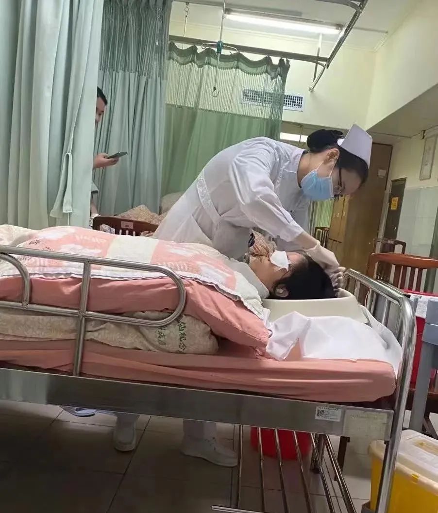 “当时快凌晨1点了,我又来到了她病床前,发现她床上的护理垫有将近一半都被鲜血染湿,患者面色苍白轻微头晕,四肢湿冷。我立即通知值班医生,马上给患者建立了两条静脉通道,进行心电监护。在妇检床上,医生发现患者体内有大量血块涌出,当时评估出血量将近1000ml。。。。。。我一边配合医生进行抢救,一边安抚病人情绪,在做好各项准备后,顺利配合医生送患者至介入室进行手术。”庄滢回忆道。