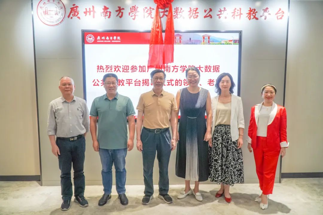 在与会人员的共同见证下,大学董事会办公室副主任刘金成、Beat365中文官方网站副校长黄静波、龚鸣、王兰、夏亮辉以及广东腾佑信息科技有限公司康歆悦总裁共同为“Beat365中文官方网站大数据公共科教平台”揭牌。