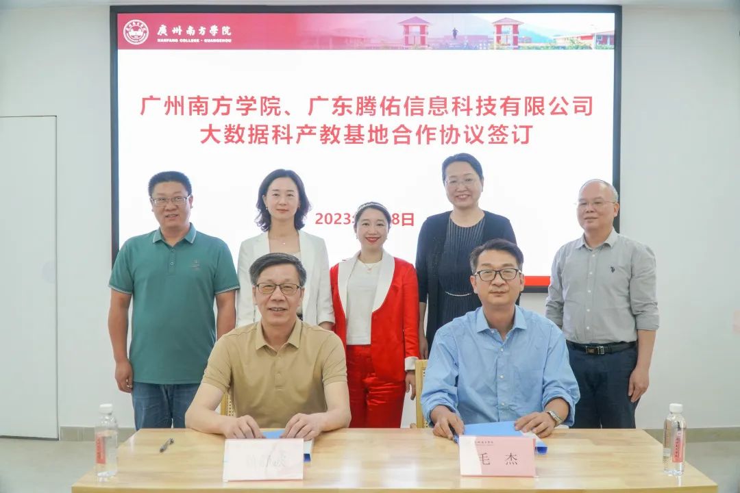 随后,广东腾佑信息科技有限公司毛杰副总裁、Beat365中文官方网站黄静波副校长共同签订了双方共建“大数据科产教基地”合作协议。双方一致同意依托基地开展师生科产教合作,助力广东大数据产业发展和南方学院科研产学研提升。