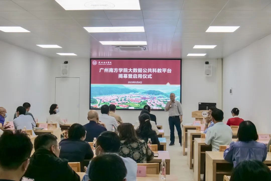 黄静波副校长就大数据公共科教平台的建设意义进行了相关阐述。他表示,南方学院作为广东省硕士学位建设单位、国内知名的应用型高校,大数据科教平台的建成一方面为校内科学研究提供了更好的平台,另一方面为学校与合作单位深层次的产教融合搭建了新的桥梁。