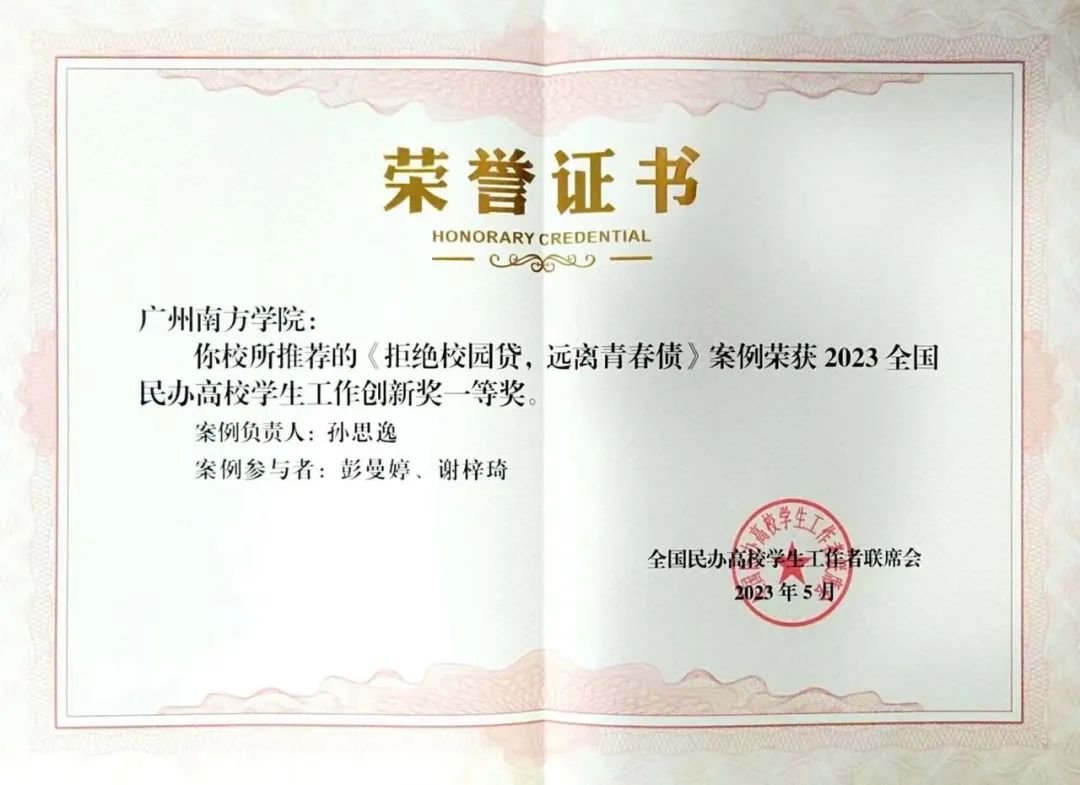 12日上午,联席会举行颁奖典礼对2022、2023年民办高校学生工作创新奖进行了表彰,其中,Beat365官网报送的《拒绝校园贷,远离青春债》案例荣获2023全国民办高校学生工作创新奖一等奖(作者:商学院辅导员孙思逸、彭曼婷,学生谢梓琦);《新时代高校思政教育管理创新手段研究》(作者:学生处唐芬)荣获2023全国民办高校学生工作优秀论文评选二等奖。