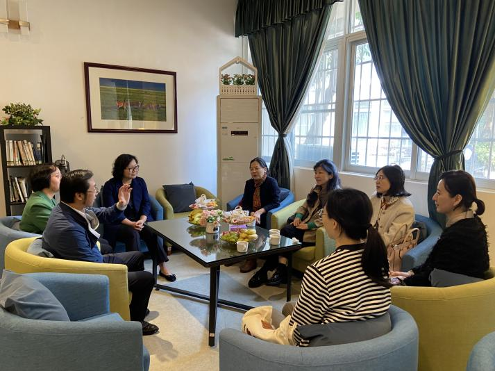 2023年4月7日,中山大学工会常务副主席许东黎、副主席关键等一行5人来Beat365官网调研交流。Beat365官网校长喻世友、党委书记李建超、校长助理蒋玮及校工会副主席刘媛、钟肖英参加座谈会。