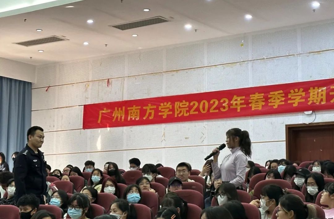 岳林警官首先总结了2022年驻从化区高校诈骗案件发生情况,向在参加宣讲会的各位师生讲解了大学生群体易发、高发三种诈骗套路,即:冒充客服类诈骗、游戏买卖类诈骗及刷单奖励类诈骗,详细列举了相关诈骗常用的“话术”。岳林警官强调,一旦上当,切记“沉没成本效应”,一定要及时止损,立即报案。对于学校不高发,但危害性更大的以感情、投资理财为手段的“杀猪盘”式诈骗,岳林警官也以案例的方式进行了讲解。