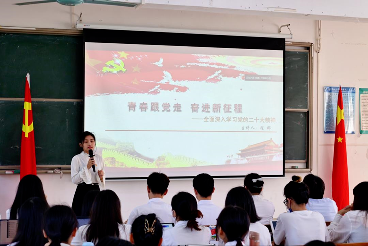 第三宣讲队队长、达人党支部书记程娜围绕“青春跟党走,奋进新征程”主题与同学们深入探讨新青年的责任与担当