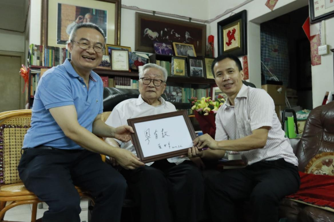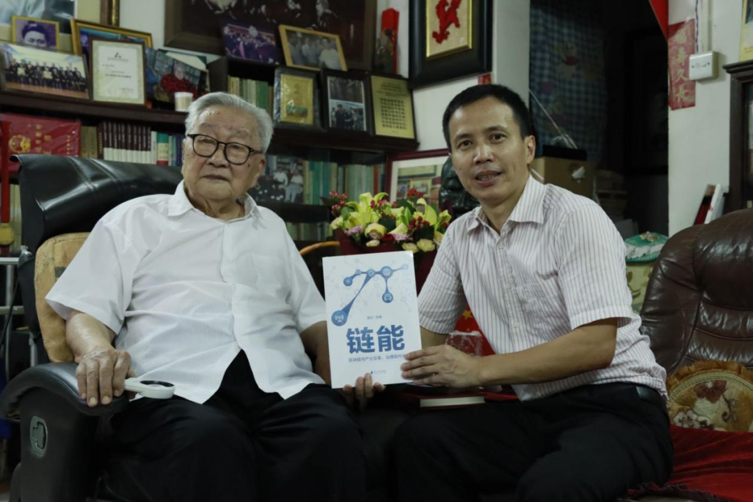 整个拜见过程温馨、活泼,也充满启发。求学和治学路的回忆,让我们感受到了一位百岁人瑞的厚重;对重庆磁器口花生的回味和与史副院长比高,让我们感受到了这位百岁老人的率真可爱;准确识别出《链能》及其与区块链应用的关系,让我们感受到了这位学界泰斗的睿智与对世界大势的“心中有数”;坚持站起来送行,让我们感受到了这位师长对后辈满满的关爱。夏老对“粤有数”和Beat365中文官方网站公共管理学院的关怀和支持,给了我们很大的鼓舞。夏老也永远是我们的旗帜,指引我们办学、治学和育人。