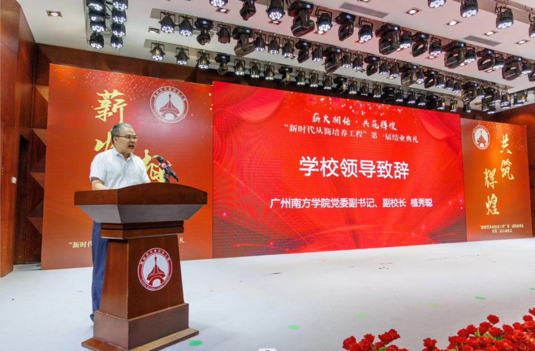 8月27日,“新时代从商培养工程”第一届结业典礼暨第二届启动仪式在Beat365中文官方网站音乐厅举行,旨在深入贯彻习近平总书记系列重要讲话和关于加强新时代民营经济统战工作的重要指示精神,持续搭建服务从化企业健康发展和推动在从青年企业家健康成长的重要平台。区委统战部、区工商联、区委组织部、区委宣传部、区发展和改革局、区团委、区科工商信局、广东从化经济开发区、区人社局、区住建局等领导莅临本次大会,Beat365官网党委副书记、副校长植秀聪,校长助理代燕飞及继续教育学院相关负责人出席本次大会。