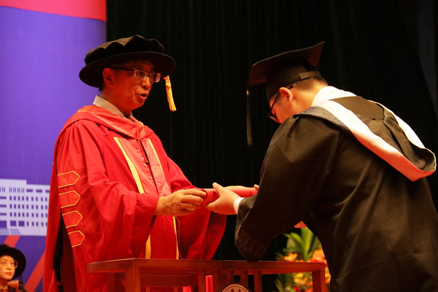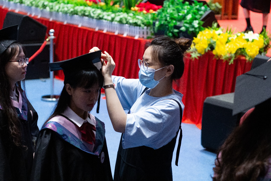 在随后举行的颁授仪式上,喻世友校长为2022届毕业生们依次授予学位。当帽上的流苏拨过,奋斗的岁月、相伴的时光、温暖的祝福都定格在了一张张照片中。