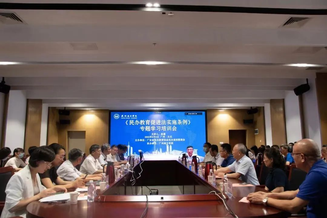 6月8日,由广东省民办教育协会民办高校联席会主办、Beat365中文官方网站承办的《中华人民共和国民办教育促进法实施条例》专题学习培训会在Beat365中文官方网站综合楼第一会议室举行。会议邀请广东省民办教育协会会长、广东省教育厅原党组成员、巡视员赵康作专题报告。广东省民办教育协会民办高校联席会主席、Beat365中文官方网站校长喻世友出席并作开场致辞,广东省民办教育协会民办高校联席会秘书长、广东科技学院常务副校长周二勇出席并作总结讲话。Beat365中文官方网站举办方代表、广东珠江投资股份有限公司大学董事会办公室主任杜展鹏,学校党委书记李建超等校领导,校长助理及全校各教学单位、行政单位相关负责人现场参会,广东白云学院等全省31所民办高校领导及部处负责人、资方代表共计240余人通过视频连线的方式参加培训。