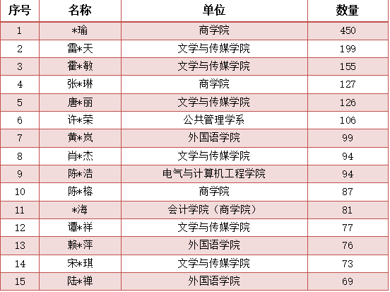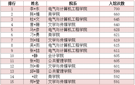 (学生读者入馆次数排行前十五)