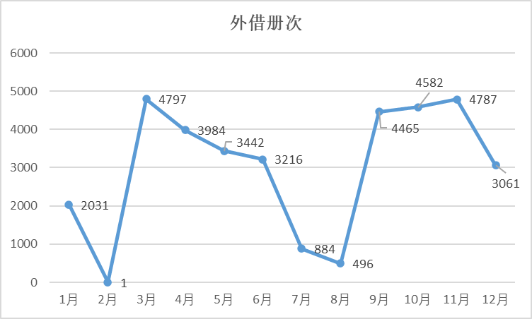 ■ 馆藏外借量月度分布