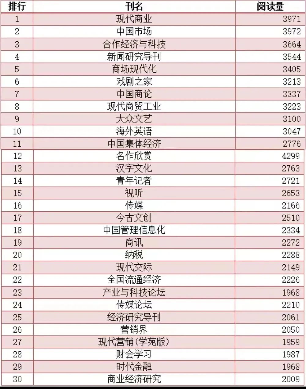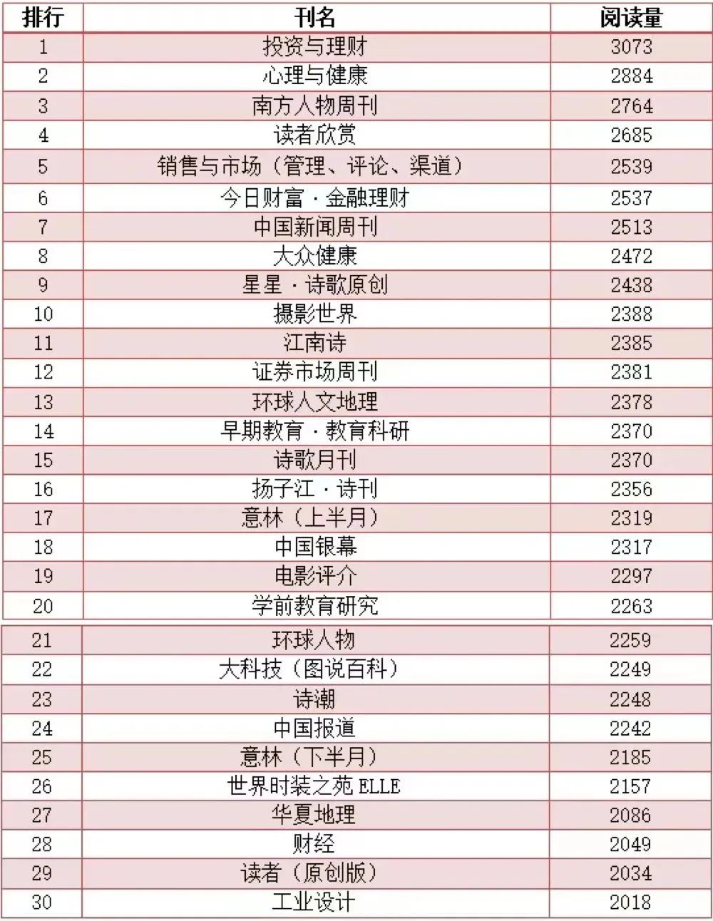■ 博看期刊阅读量排行前三十