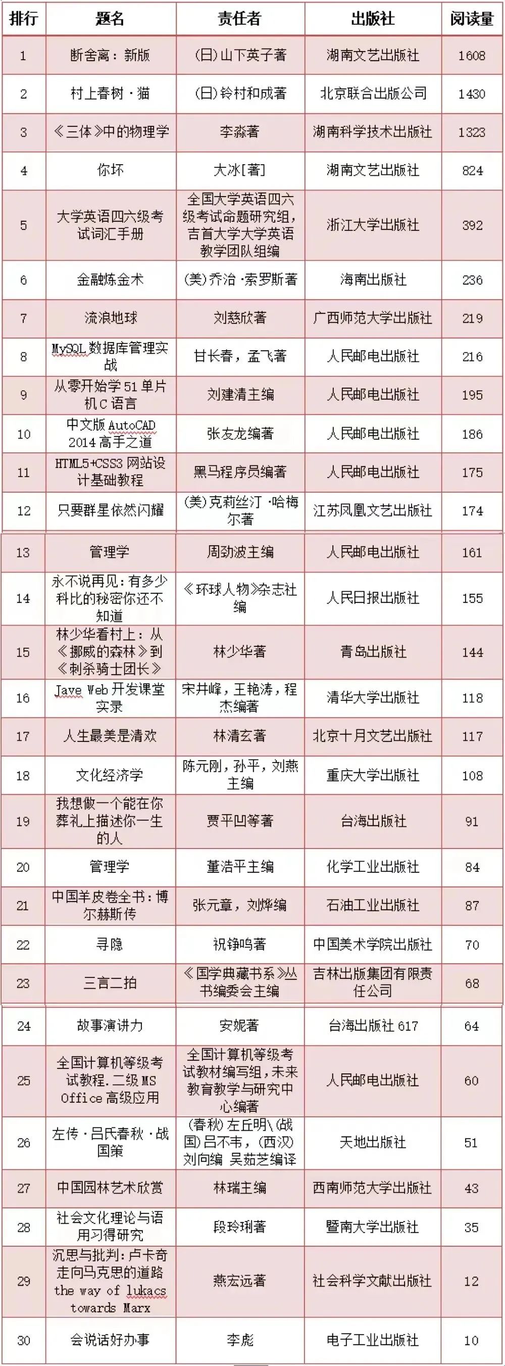 ■ 畅想之星电子书阅读量排行前三十
