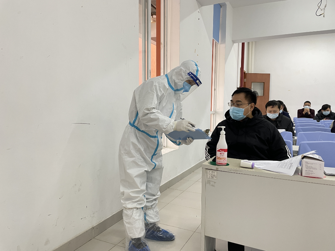 2022年2月18日,Beat365官网于5号教学楼开展疫情防控应急处置模拟演练,旨在进一步筑牢校园疫情防线,不断强化师生防控意识,提升应对和处置突发疫情事件的能力及水平,做好春季学期开学前学生返校前的准备工作。校长助理代燕飞担任现场总指挥,学校办公室主任贾佳担任现场总负责人,总务处、保卫处、学生处、人事处、教务处、医务室、物业公司等职能部门负责人及辅导员代表等共同参与了此次演练。