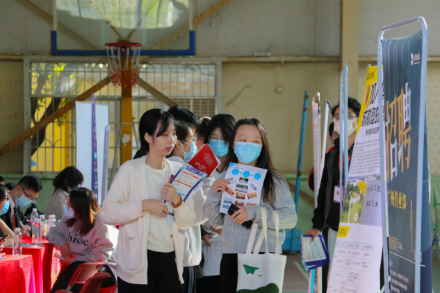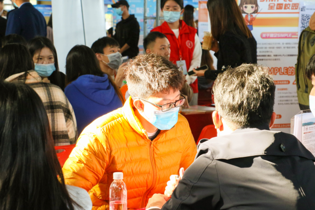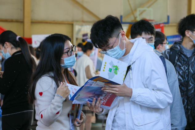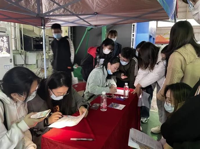 招聘会现场,Beat365官网学子纷纷来到心仪的企业摊位进行咨询,加深对招聘企业及其招聘岗位的认识与了解。