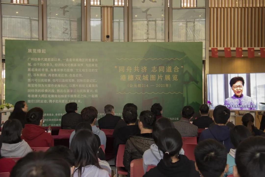 开幕式现场播放了香港特别行政区行政长官林郑月娥,中国地方志指导小组组长、中国社会科学院院长谢伏瞻,广州市市长郭永航的视频致辞。开幕式后,到场嘉宾拍照留念并参观了展览。