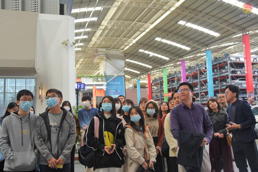 欧阳州勇校友对游学团的到来表示热烈的欢迎,带领大家参观了岭南购物城、OMG网红街、岭南电商园,并向大家介绍了电商园的发展历程,以及每一块区域的设计、布局背后的考量。
