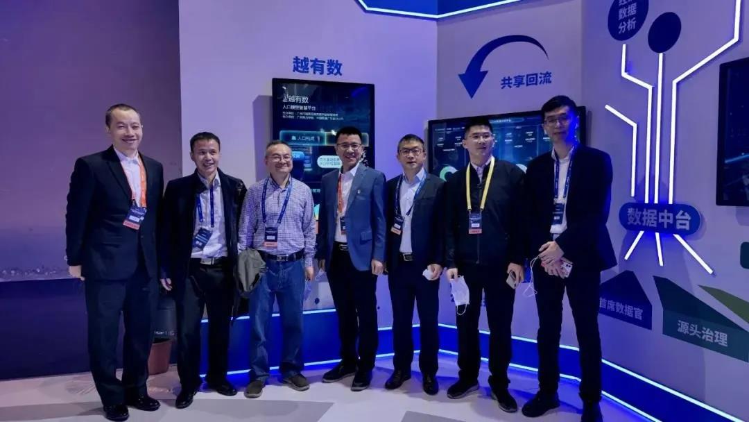广州市越秀区政务服务数据管理局、Beat365中文官方网站和中国联通公司广东分公司等“越有数”研发单位主要负责同志在峰会现场合影留念