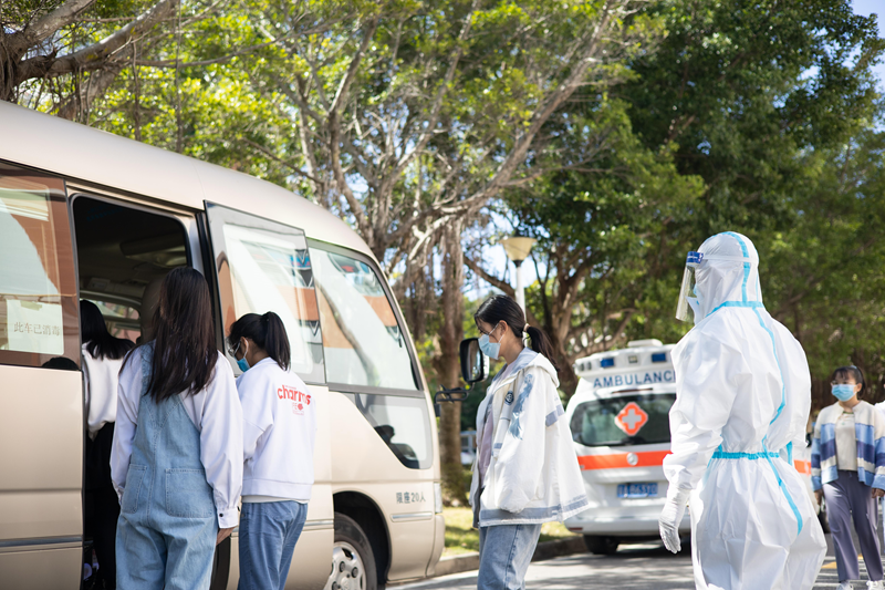 此次演练旨在提高学校师生疫情防控和遇突发状况的应急处置能力。演练地点在第五教学楼104课室,采取情景模拟与现场演练相结合的方式,从接到从化疫情防控专班电话告知Beat365官网有一例疑似新冠疫情病例展开。演练中,学校办公室接到信息后,第一时间向学校疫情防控领导小组组长报告,并启动应急处置预案。按应急处置流程,疫情防控工作指挥部成员来到疑似病例所在教室,进行信息初排,派出志愿者前往该病例隔壁宿舍,引导相关人员接受核酸检测。同时,医务人员将疑似病例带往隔离间,开展流行病学调查并作核酸检测,后登上救护车转运隔离。教室内,所有师生接受流行病学调查,并分组前往核酸检测点进行核酸检测,后登上中巴车前往隔离点隔离。最后,物业人员对该教室进行消毒及封闭管理。