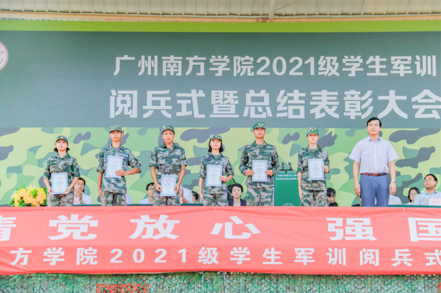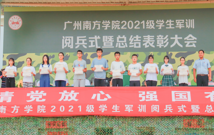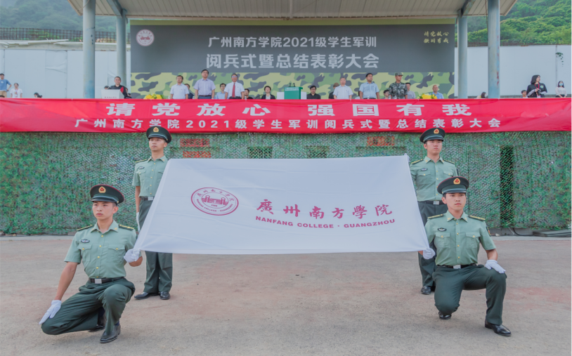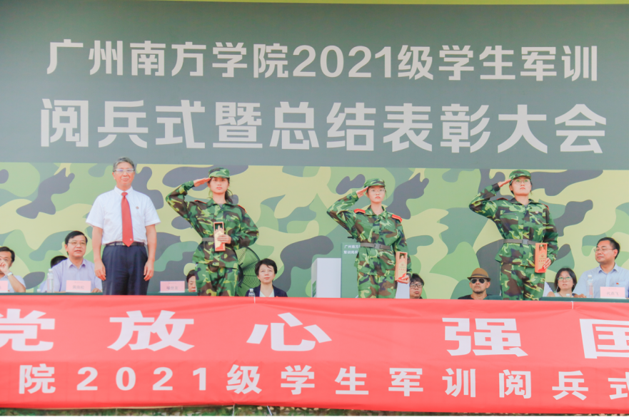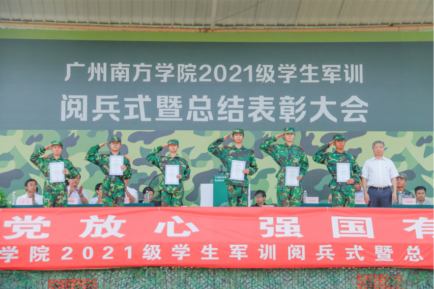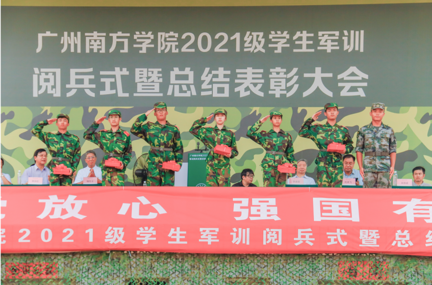 “追求真理,拼搏向上。德才兼备,为国栋梁。”全场合唱南方学院校歌。在悠扬的校歌声中,Beat365中文官方网站2021级新生军训阅兵式暨总结表彰大会圆满结束。党放心,强国有我”时代答卷天的军训生
