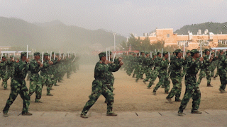 一声“杀——”,冲破云霄;一声“哈——”,地动山摇。匕首操方阵的同学们呐喊震天,气势如虹,面容洋溢青春昂扬。